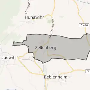 - Розташування муніципалітету Зелленберг на мапі Франції та сусідні муніципалітети