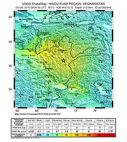 Землетрус у Гіндукуші 2015 — потужний землетрус, попередньо оцінений у 7,5 балів[4] за шкалою Ріхтера, що стався на півночі Афганістану[5], у провінції Бадахшан[6], 26 жовтня 2015 об 14:45 (09:09 UTC). За останніми даними, понад 263 людей були вбиті, здебільшого в Пакистані. Підземні поштовхи відчувалися в Афганістані, Пакистані, Таджикистані, Узбекистані та Киргизстані[7][8][9]. Землетрус також відчувався в індійських містах Нью-Делі, Срінагар і в префектурах Кашгар, Аксу, Хотан і Кизилсу в Синьцзяні, Китаї, а також в афганській столиці Кабулі[10].