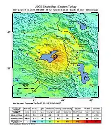 Руйнівний землетрус у південно-східній турецькій провінції Ван магнітудою 7,1, що стався 23 жовтня 2011 року о 13 годині 41 хвилину за місцевим часом за 16 км на північний схід від міста Вана. Гіпоцентр землетрусу знаходився на глибині 16 (19[2]) км[1]