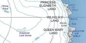 | Географічні об'єкти | вулкан Гауссберг, Західний шельфовий льодовик, підльодовикові озера Радянська, Елворт | |||