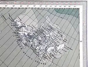 Під час Німецько-радянської війни в західній частині острова діяла німецька метеостанція, названа «Шукач скарбів», а також база відстою і дозаправки підводних човнів. Метеостанція була відкрита в рамках проекту під кодовою назвою «Вундерланд» («Країна чудес») в 1943 році і пропрацювала до липня 1944 року[7]. Залишки цієї бази виявив в 1947 році полярний льотчик І. П. Мазурук, підшукуючи на острові місце для арктичної авіабази. Радіометеостанціі розміщувалася в капітальних будинках-бліндажах з подвійними стінами, плексигласовими вікнами, із замаскованими під сніг білими дахами.