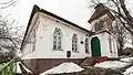 Цегляні фасади прикрашено геометричним візерунком, сформованим кладкою цегли. Виконано візерунок за принципом «біле по білому». Фасади розкріповано пілястрами, а завершуються цегляним вінчаючим карнизом та дерев'яним піддашком по якому влаштовано накладний геометричний декор. Віконні та дверні прорізи мають трапецієподібну форму. Пізніші дверні прорізи в інтер'єрі прямокутні. Стіни інтер'єру оштукатурені.