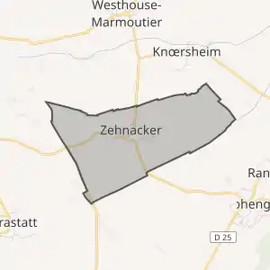 - Розташування муніципалітету Зенакер на мапі Франції та сусідні муніципалітети