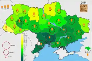 Зернові культури в Україні займають 45—50 % загальної посівної площі.[1] Перші місця за посівними площами і за значенням належить культурам, що поділяють 9 родів: пшениця, жито, тритикале, ячмінь, овес, просо, кукурудза, сорго, рис.[1][3] Рід поділяється на менші таксони — Види, різноманітності (varieties) і різновидності (subvariaties).[1]