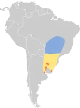 Болотяні зерноїди гніздяться на північному сході Аргентини (в провінціях Коррієнтес, Ентре-Ріос і, можливо, Буенос-Айрес), в Уругваї (в долині річки Уругвай) та на південному сході Парагваю. Взимку вони мігрують на північ, досягаючи центральної Бразилії.