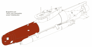 Тут розміщалися 6-циліндровий дизельний двигун, електродвигун, Випускна система дизеля та інші механізми рухової установки.
