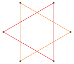 ![]() Гексаграма, {6/2}, ззірчення шестикутника є з'єднанням двох трикутників. |