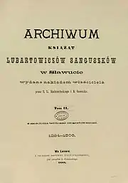 Вершиною наукової діяльність Сигізмунда Радзимінського є участь в укладанні славнозвісного збірника документів «Archiwum książąt Łubartowiczów-Sanguszków w Sławucie» у 7 т. (Львів, 1887—1910). Роботу цю він розпочав спільно з Петро Скобельським та Б. Горчаком на прохання князя Романа Сангушка. Радзимінський працював лише над першими двома томами видання та над двома останніми. Видання включало у себе понад 2000 документів латинською та давньоукраїнською мовами від кінця XIII ст. до 1577 р.. Вона ж сприяла тому, що С. Радзимінський розпочав роботу над монографією про князів Сангушків, яку видав у 3-х томах у Львові протягом 1906—1911 рр. У цій роботі, написаній на основі Литовської метрики, документів з віленських, київських та окремих родових архівів, подано життєписи нащадків Любарта-Федора Ольгердовича, а також князів Кобринських, Краснічинських, Сангушків на Ратні і Коширі, а також їх несухоїзького відгалуження. За допомогою до того невідомих науці джерел, відрізнив трьох одночасних князів Федорів: Федора Ольгердовича (брата Ягайла), Федора Любартовича та Федюшка на Володимирі.