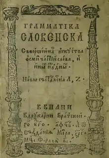 - Граматика словенська: додаток / підготовка факсимільного видання та дослідження пам'ятки В. В. Німчука; Академія наук Української РСР, Інститут мовознавства ім. О. О. Потебні. — Київ: Наукова думка, 1980. — 55 c.: портр. — (Пам'ятки української мови).