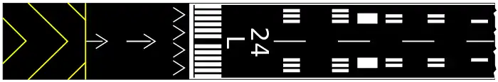 - Зона приземлення (подвійні паралельні прямокутники) — починається в 300 метрах від порогу ЗПС.