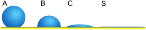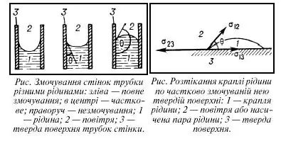 - частковому або повному розтіканні рідини по твердій поверхні;
