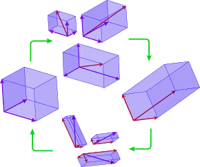 Якщо ми хочемо перевести будь-який вектор простору в цей базис, нам треба помножити зліва його компоненти на обернену до цієї матрицю,[9] а щоб перевести вектор з координатами у новому базисі у координати стандартного потрібно нові координати помножити на саму матрицю.