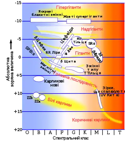- пульсуючі (ACYG, BCEP, BCEPS, CEP, CEP(B), CW, CWA, CWB, DCEP, DCEPS, DSCT, DSCTC, GDOR, L, LB, LC, M, PVTEL, RPHS, RR, RR(B), RRAB, RRC, RV, RVA, RVB, SR, SRA, SRB, SRC, SRD, SXPHE, ZZ, ZZA, ZZB);
