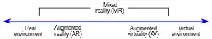 У 1994 році Пол Мілграм та Фуміо Кішино визначили змішану реальність як «… в будь-якому місці між екстремумами віртуального континууму.», де віртуальний континуум простягається від повністю реального до повністю віртуального середовища з розширеною реальністю і доповненою віртуальністю в інтервалі між ними.