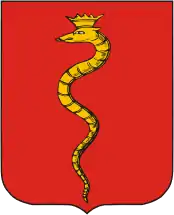 У червоному полі герба зображений «золотий змій, що звивається вгору, а на голову одягнена корона», що показує промовисто саме ім'я міста, а також достаток змій в околицях.