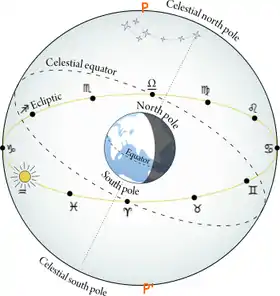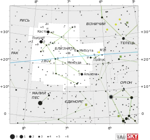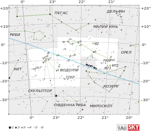 | Зодіакальне сузір'я та екліптика (—) | ![]() |
