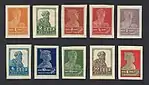 - Fokker E.III, червоний, без зубців, без надпечатки нового номіналу, до обігу не надходили[10][11].