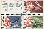 Зчіпка «50-річчя визволення території Білорусі, Росії та України від німецько-фашистських загарбників»[17][18], три марки з купоном