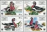 Зчіпка з чотирьох марок «Червоновола казарка» Branta ruficollis[54][55][56] | 0,20 0,30 0,40 0,60 гривні |
