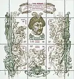 - Блок 350 років від початку визвольної війни українського народу (1648-1676 рр.) під проводом Богдана Хмельницького. КМД УДППЗ «Укрпошта». poshta.kiev.ua. Архів оригіналу за 30 листопада 2017. Процитовано 2 грудня 2017.