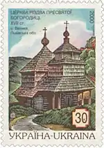 Серія Церкви: «Церква Різдва Пресвятої Богородиці» XVII ст., с. Велике, Львівська обл.[47][50] | 0,30 гривні |