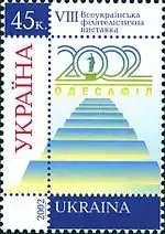 - Марка VIII Всеукраїнська філателістична виставка "Одесафіл’02".. КМД УДППЗ «Укрпошта» (укр.). poshta.kiev.ua. Архів оригіналу за 4 березня 2018. Процитовано 4 березня 2018.