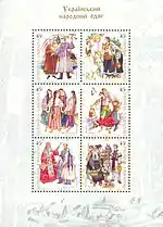 - Блок Український народний одяг/2002.. КМД УДППЗ «Укрпошта» (укр.). poshta.kiev.ua. Архів оригіналу за 4 березня 2018. Процитовано 4 березня 2018.