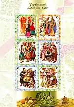 - Блок Український народний одяг 2003.. КМД УДППЗ «Укрпошта». poshta.kiev.ua. Архів оригіналу за 11 березня 2018. Процитовано 11 березня 2018.