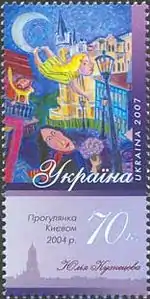 Серія «Київ очима художників»: Юлія Кузнєцова. Прогулянка Києвом. 2004 р[23][26]. | 0,70 гривні |