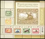 Блок№ 92: „90-річчя поштових марок Української народної республіки“ з 6-ти марок та купона: | 1,50 1,50 2,00 2,00 6,00 7,00 гривень |