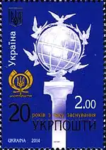 - Марка «20 років з часу заснування УКРПОШТИ»/2014.. КМД УДППЗ «Укрпошта». poshta.kiev.ua. Архів оригіналу за 1 квітня 2018. Процитовано 1 квітня 2018.