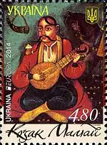 - Поштові марки “Козак Мамай” та “Кобза” виходять у світ.. КМД УДППЗ «Укрпошта». poshta.kiev.ua. Архів оригіналу за 25 березня 2018 року. Процитовано 25 березня 2018 року.