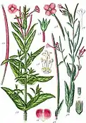 Багаторічна рослина 20–100 см. Листки супротивні, іноді до 3 в кільцях, 5–11(13) см завдовжки, 0.5–3 см шириною, по краю з віддаленими дрібними зубчиками, нижні листки коротко-черешкові. Квітки дрібні, їх пелюстки 5-8 мм довжиною, блідо-рожеві. Плоди 3–7 см, запушені або рідше майже оголені. Насіння темно-коричневе, 0.8–1.1 мм. 2n = 36[2][3].