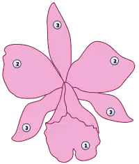 Квітки орхідей шестичленні (елементи розташовані у два кола).