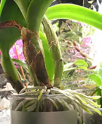 Серед епіфітніх орхідей зустрічаються як вічнозелені, так і листопадні рослини. У перших листя може зберігатися декілька років, другі скидають листя після визрівання паростка.