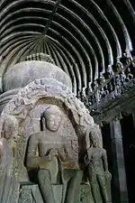 Інша ожила статуя — богиня в храмі дикунів. Коура називає її Калі, але її вигляд поєднує зовнішність двох богинь індуїстського пантеону: Калі і Дурґи. Згідно з каноном, у Калі чотири руки, у Дурґи може бути вісім або більше. У попередніх начерках художник дав ожилій статуї вісім рук, але пізніше, усвідомлюючи труднощі в реалізації й у зніманні подібного об'єкта, скоротив число до шести. Богиню при постановці сцени з живими акторами заміняло до трьох каскадерів-фехтувальників. Сцену двобою з ожилою статуєю богині більшість критиків назвало найкращою сценою у фільмі[18]. У своїй доволі негативній рецензії Гленн Еріксон відзначив серед позитивних сторін тільки цю сцену, назвавши її демонстрацією «магії Гаррігаузена»[19].