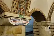 На мозаїчному фризі у проміжному вестибюлі, прямо над виходом до ескалатора, який веде на поверхню, знаходиться також мозаїчний напис «СЛАВА УКРАЇНІ»[7]. Зараз його майже неможливо помітити, але протягом декількох років після відкриття станції його було дуже чітко видно. Варто зазначити, що на момент побудови станції Україна ще не була незалежною державою, і гасло «Слава Україні» офіційно вважалось неприйнятним і його вживання могло призвести до переслідувань.[8].