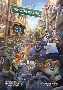 «Зоотрополіс» (англ. Zootopia; Zootropolis (у Великій Британії та Ірландії)) — американський комп'ютерно-анімаційний фільм, знятий Байроном Говардом, Річем Муром і Джаредом Бушем[4]. Лауреат премії «Оскар» в номінації «Найкращий анімаційний фільм». Прем'єра стрічки в Україні відбулася 17 березня 2016 року[5]. Фільм розповідає про кролицю Джуді Гопс, яку призначають захищати закон у Зоотрополісі.
