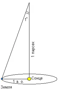 В астрономії застосовують особливу одиницю вимірювання відстані до зір — парсек (пк). Зоря, яка перебуває на відстані 1 пк, має паралакс рівний 1". Відповідно, 1 пк = 206 265 а.о. = 30 трлн км.