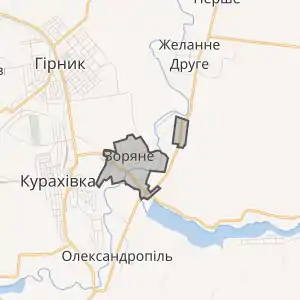 Землі села межують із територією смт Курахівка Селидівської міської ради Донецької області.