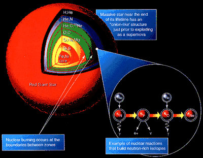 - 2) термоядерні реакції, що протікають в зорях на стадії червоного гіганта або у нових і наднових;
