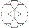 Ортогональні проєкції. Зрізаний куб має п'ять спеціальних ортопроєкцій - по центру, на вершині, на двох типах ребер, і двох типах площин: трикутниках і восьмикутниках.