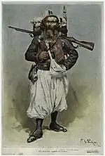 - Солдат або офіцер найманих стрілецьких частин в армії султанської Османської імперії.