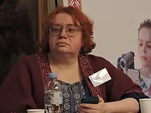 - Marta Górna (16 жовтня 2014). Na Ukrainie trwają dwie wojny: w jednej się zabija, w drugiej się kłamie (ROZMOWA). Wyborcza.pl. Процитовано 12 квітня 2020. (пол.)