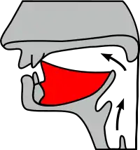 Місце творення зубних приголосних. Червоною барвою виділений язик