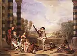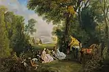 - картину Антуана Ватто Галантний Арлекін і Коломбіна, Франція, бл. 1714—1717, дубова панель, олія (мала вітальня).
