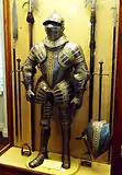 - кінний обладунок, імовірно, зброяр Ульріх Рьомбс, Німеччина, Ландсгут, бл. 1480, 1800—1899 (рукавиці), залізо з низьким і середнім вмістом вуглецю сталі, шкіра, повсть, полотно, дерево і мідні сплави, рифлення, пресування, точіння, протруювання, штампування, карбування, гравірування (зала європейської зброї II);