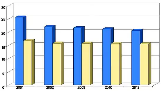 - Розподіл населення за статтю та віком, середній вік населення, Полтавська область (осіб) - Регіон, 5 рiчнi вiковi групи, Рік, Категорія населення , Стать [Населення за статтю та віком...2001].