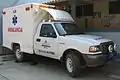 Спочатку в США багато автомобілів швидкої допомоги використовували хрест яскраво-оранжевого кольору (англ. safety orange) на квадратному білому світлорефлекційному тлі. Ця емблема визначала їх як підрозділи екстреної допомоги. Такий логотип застосовувався до того, як в США були розроблені національні стандарти для Emergency Medical Personnel.