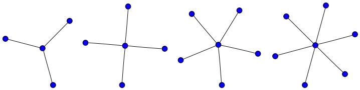 Зірка також може бути описана, як зв'язний граф, в якому не більше однієї вершини, що має степінь більше одиниці.